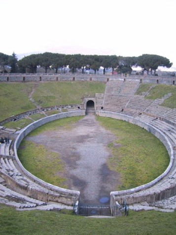 左:イタリア、ポンペイの遺跡、円形闘技場(BC.80年) 2001年2月21日撮影